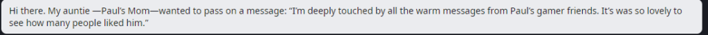 Though he had to step away from raiding multiple times due to health issues, “Ban” never truly left. He stayed involved for as long as he could, always offering support, wisdom, and a presence that reassured us even in his absence. He fought his real-life battle with the same courage and resilience that made him a legend in the game. But last night, on 02/02/2025, that fight came to an end. Paul — “Ban” sadly passed away after bravely battling cancer for a prolonged time.